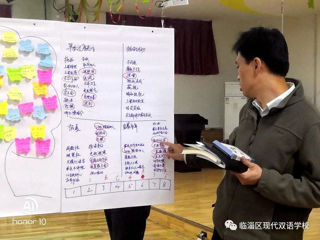 其次,王峰校长点评当下班会进行中存在的问题,并指出班会的侧重点———提高解决问题的能力。在此环节,王峰校长分享了《正面管教》学习工具卡,就“怎么解决问题”“挤海绵式学习”(学习不间断,但勿贪多)及在课堂上的应用给出了建设性建议,令老师们茅塞顿开。