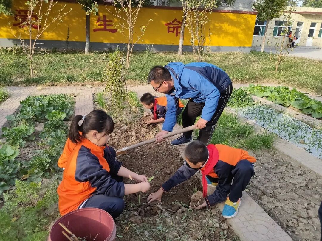 近日,齐都镇中心小学在校内蔬菜种植实践园开展种植活动。(张倩 胡刚)