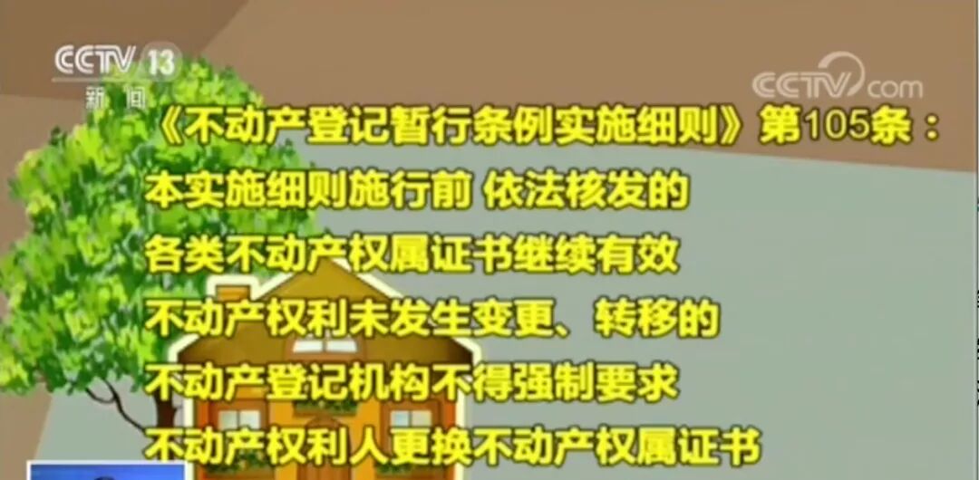我们也是本着随动随换的原则,也就说你的房产动了,比如说你进行出让,或者抵押了,那么在这种情况下,你来办理业务的时候,随着你的房产变更,我们给你换发新的不动产证。