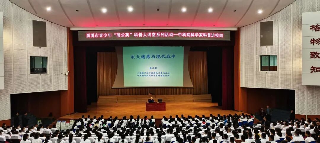 为进一步贯彻落实《全民科学素质行动计划纲要》,在青少年中广泛传播科学知识、科学思想、科学方法和科学精神,使学生了解更多的前沿科技,市科技馆、临淄教体局邀请中国科学院专家到我区开展中小学蒲公英科普大讲堂活动。2020年11月10日上午9点,临淄中学中学一号报告厅,高一级部2400余名师生参加了潘习哲教授题为《航天遥感与现代战争》的报告会。