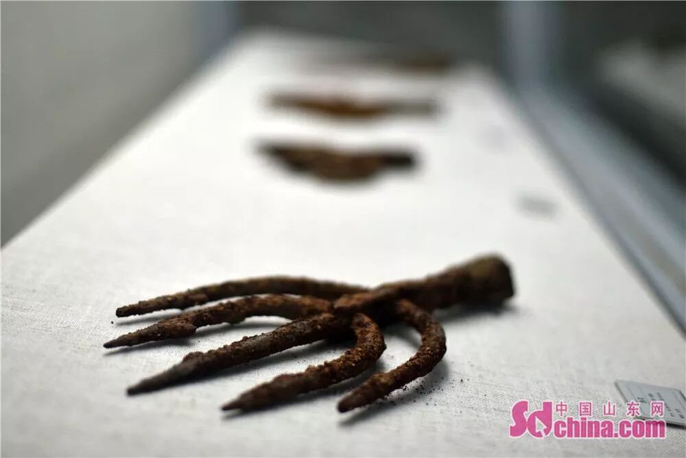 齐国战汉时期,一种用陶制成的原始捕抓诱鱼工具。当时人们用陶仿制成某些海里动物窝穴状,上缘处留有穿绳孔,用绳系好后,抛人水里,在合适时间用绳把假窝拉出水面,获捕各种窝居的爬形海洋动物(如:蟹、虾等)。这种以假窝穴诱捕法,比用饵诱法要经济多。(摄影 徐建彬)