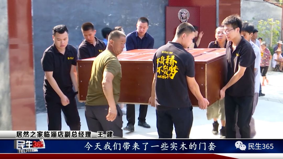 伴随着震天的锣鼓,居然之家临淄店的工作人员把一套崭新的家具搬进高怀清的新家里。