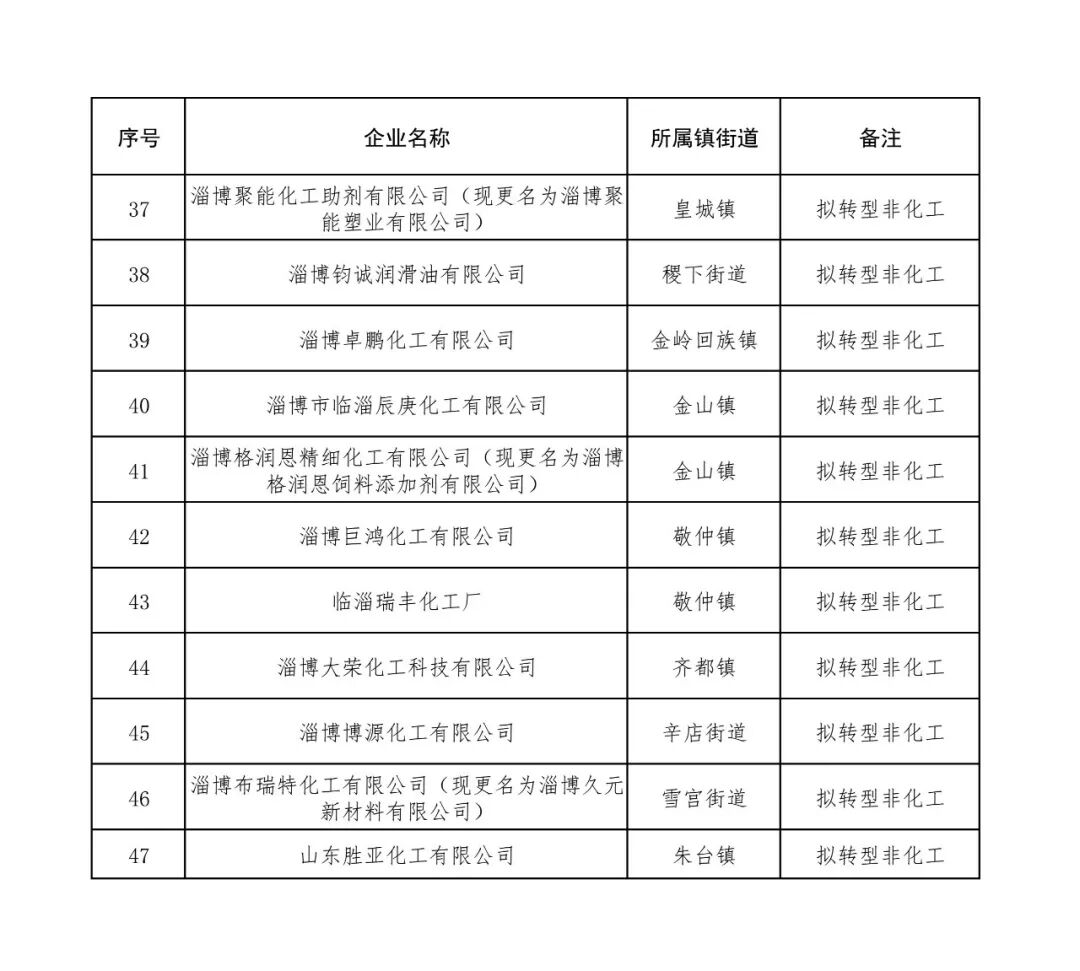 山东临淄105家化工企业将关闭 13家将转型非化工企业(附名