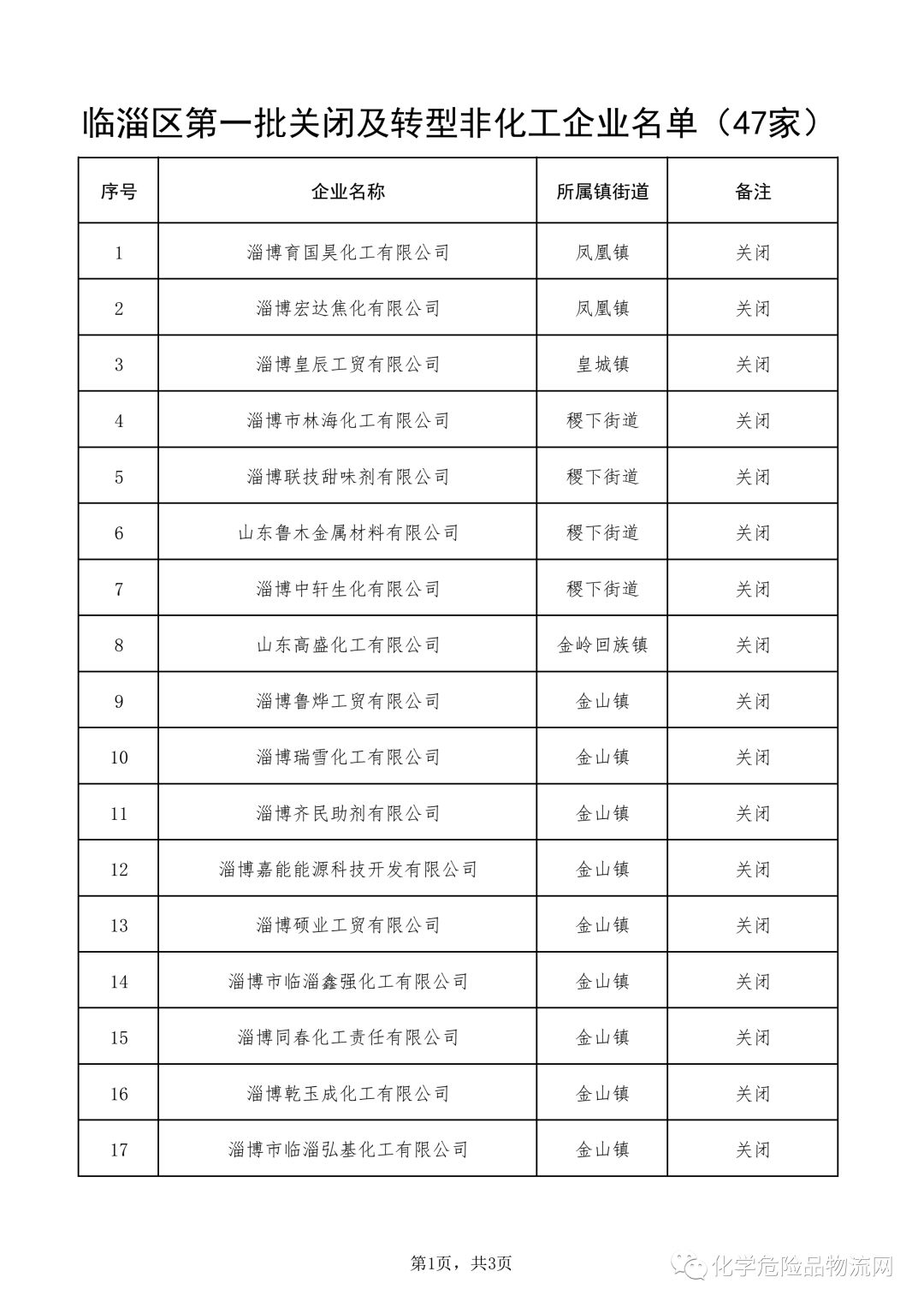 8月3日,临淄区人民政府网站发布:关于公示第一批关闭淘汰和转型非化工企业及第二批关闭淘汰化工企业名单的通知。
