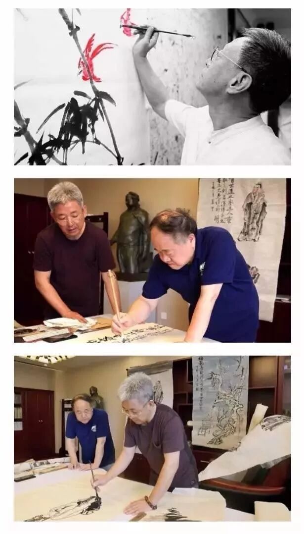 △莫言、吴悦石、杨华山三位大师在进行创作