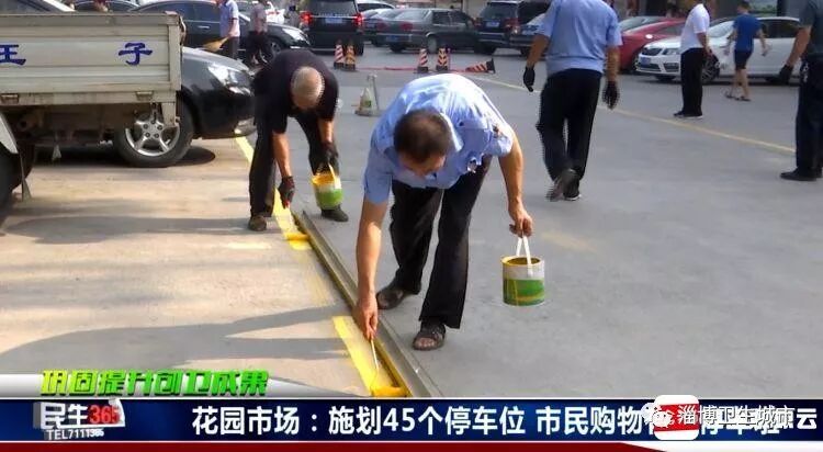 勇士社区居民买菜的问题解决了,可是,位于稷下街道的花园市场也有一个难题,那就是难停车。最近,为了缓解停车难,区综合行政执法局与花园市场携手合作通过治理和清理规划出45个停车位,让市民拍手叫好。早上八点趁着天气还不太热,花园市场的工作人员早早来到市场门前施划停车线。