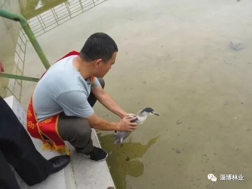 淄博市临淄区垢皋林场放生夜鹭回归自然