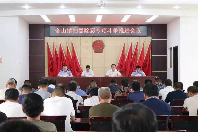 8月4日,金山镇组织各村居党支部书记、主任、警务助理,南王、边河派出所有关负责同志参加扫黑除恶专项斗争推进会议,9月2日,又召开扫黑除恶专项工作推进会,对扫黑除恶工作进行再推进、再部署,要求全镇各级各部门充分认识扫黑除恶专项斗争的重大政治意义、现实意义、历史意义,坚决打赢这场硬仗。一是坚持打早打小,形成压倒态势。以扫黑除恶专项斗争为牵引,着力解决人民群众深恶痛绝的赌博、吸毒、传销、拐卖等违法犯罪,提高社会治安整体水平。二是坚持综合治理,遏制黑恶犯罪。充分发挥社会治安综合治理体制机制优势,加强对黑恶势力易发多发地带排查整治,完善重点人群动态管控机制,推动落实重点行业、领域监管责任,最大限度挤压涉黑涉恶犯罪组织滋生空间。三是坚持标本兼治,建立长效机制。坚持除恶务尽、消除后患,对涉黑涉恶犯罪案件,坚决深挖背后的腐败问题;对黑恶势力“关系网”“保护伞”,一律一查到底、严惩不贷。四是坚持责任上肩,扛起维护稳定的政治责任。严格按照“党政同责、一岗双责”“属地管理、分级负责”“谁主管、谁负责”要求,主动作为、狠抓落实,切实履行好党和人民赋予的神圣使命,确保扫黑除恶工作落到实处。
