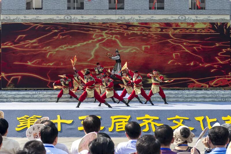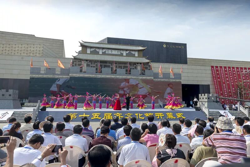 9月12日上午,由淄博市人民政府主办,临淄区人民政府、淄博市文化广电新闻出版局、淄博市旅游发展委员会共同承办的第十五届齐文化节在齐文化博物馆北广场开幕。