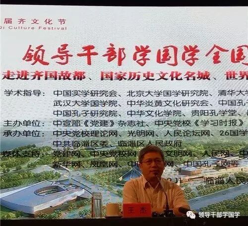 2017年9月11日,在第十四届齐文化节即将开幕之际,“领导干部学国学全国行”第八站走进齐国故都、国家历史文化名城、世界足球起源地——山东临淄。下午2:00,中国实学研究会、领导干部学国学促进会会长、中共中央党校博士生导师王杰教授在临淄人民会堂做《国学中的为政智慧》主题报告。省政府参事、省委高校工委原副书记齐秀生参加了本次讲座。