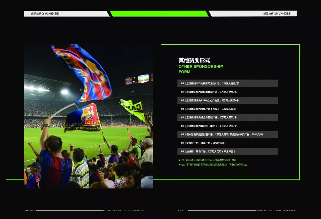 2、足球赛场场内大屏幕赛前广告,5万元人民币/条