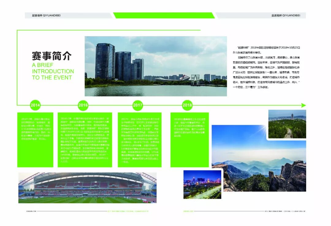 2016:2016年7月,中国足球协会正式批准淄博举办“起源地杯”国际足球锦标赛,同时中国足协作为赛事指导单位,负责赛事技术官员、裁判组的选派,并选派国家队参赛。首届“起源地杯”国际足球锦标赛于2016年10月1日—8日在淄博市体育中心体育场、临淄齐都体育场举行,西班牙马德里竞技,德国云达不莱梅,伊朗弗拉德赛帕罕足球俱乐部和中国队参加的比赛,共吸引20余万人到场观看,赛场氛围热烈。全国共有超过70家媒体对赛事及相关活动进行专题报道,发表报道新闻160余篇。淄博移动、淄博联通向市民发送手机短信、推送信息1450万条。据媒体监测公司初步测算,2016年“起源地杯”国际足球邀请赛的媒体价值近600万元人民币。