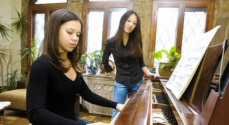 蔡美儿在监督女儿弹琴