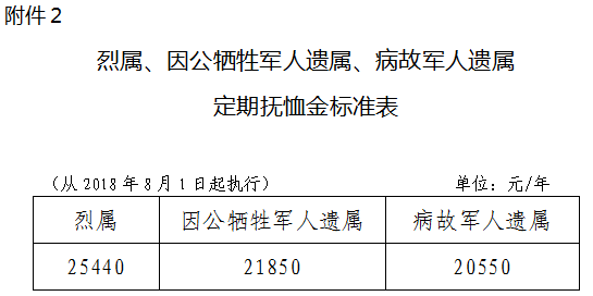 提高残疾军人(含伤残人民警察、伤残国家机关工作人员、伤残民兵民工)的残疾抚恤金、烈属(含因公牺牲军人遗属、病故军人遗属)的定期抚恤金,调整后的标准如下: