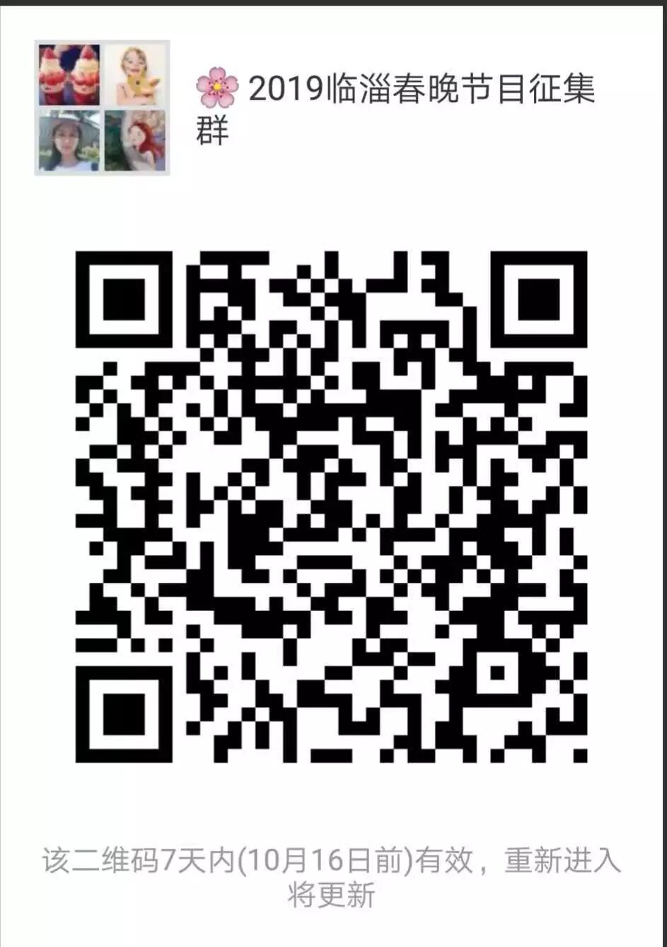 1、请有意参加临淄百姓春晚的团队将参赛节目以视频、音频格式,发送至邮箱:lzqwhj01@163.com;或以U盘、碟片的形式报送至文化艺术科;或者扫描二维码报名。