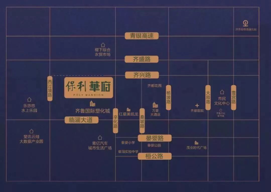 保利华府选址西区核心地段——临淄大道与辛化路交会处,作为张店进入临淄的第一门户,汇聚双城优势,打造城市名片。项目紧邻城市中轴临淄大道,5公里内涵盖商业、教育、医疗、文化、商务等配套设施,15分钟内尽享一站式都市便捷生活。