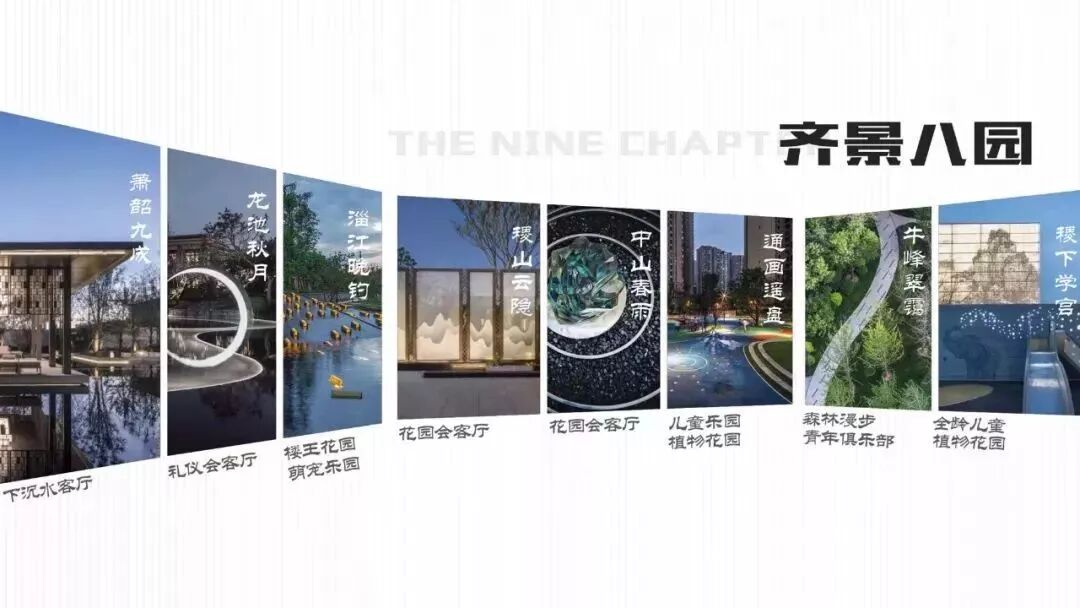 社区景观以绿色健康家为理念,以齐文化为景观设计语言,由国内一线景园设计单位成都绿茵操刀主创,打造齐景八园,传承东方神韵。