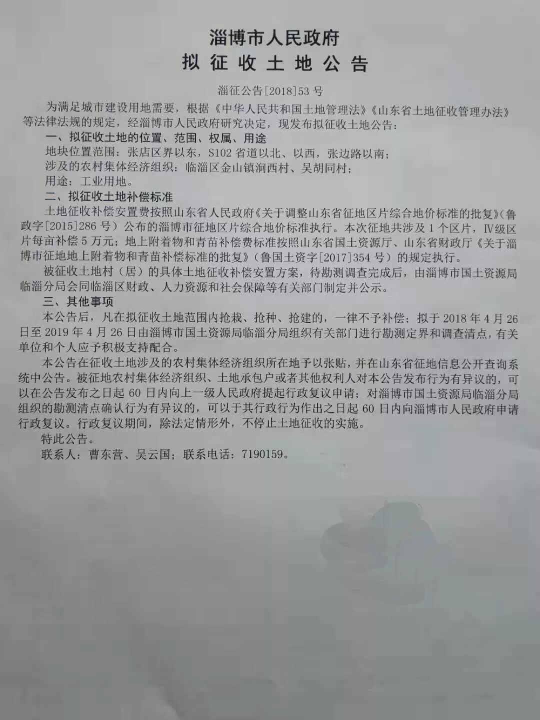 一则土地征收公告
