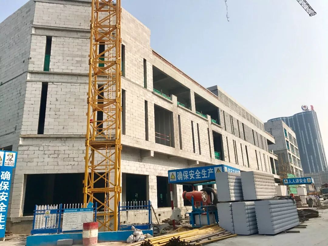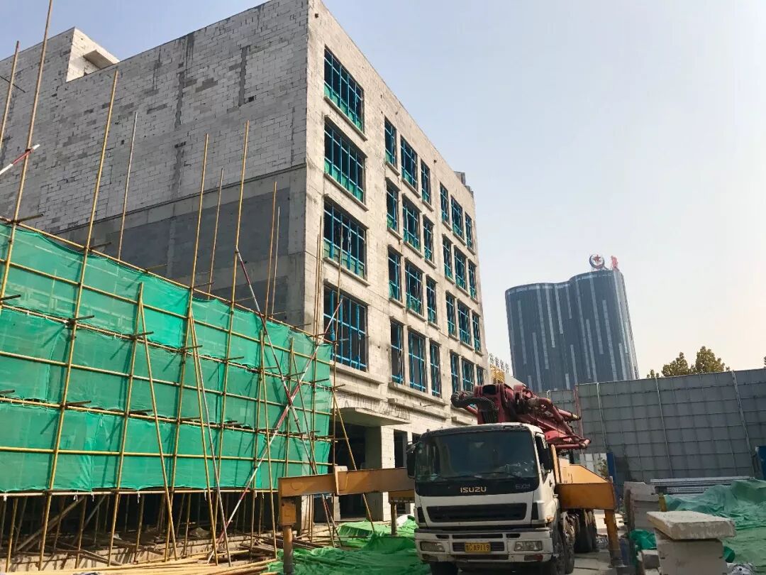 ■ 齐商银行主体完成,室外墙体砌筑正在进行;