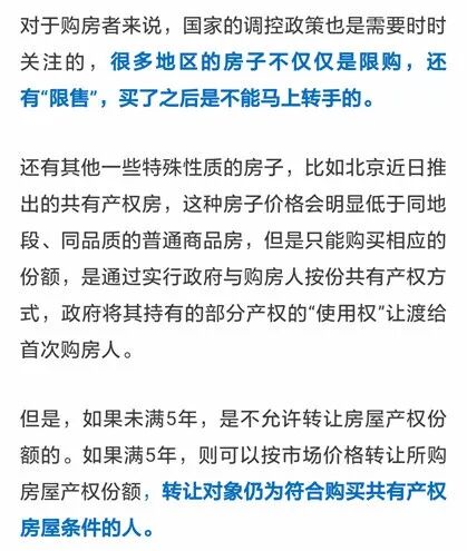 因此,有政策限制的房子在买卖时,要看清政策规定,仔细研究当中的限制规定会不会影响自己的居住和使用。