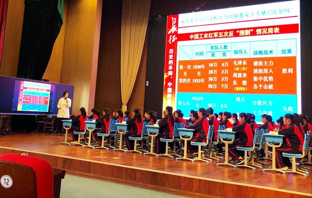 淄江中学的吴琼老师呈现的《红军不怕远征难》通过结合大量的地图、图片、视频将历史知识较为直观、形象的传授给学生,将较难的长征知识上得深入浅出,课堂气氛较为活跃。