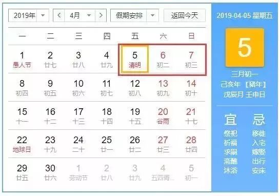 4月5日(清明节)-4月7日(星期日),共放假3天。