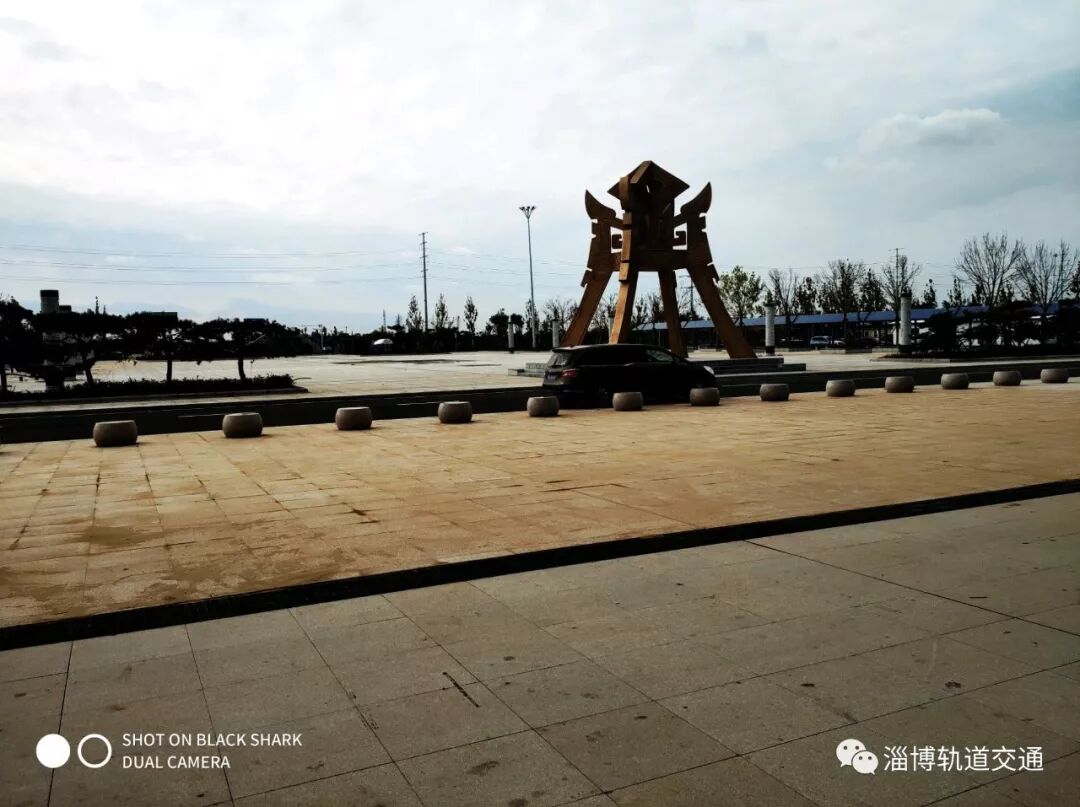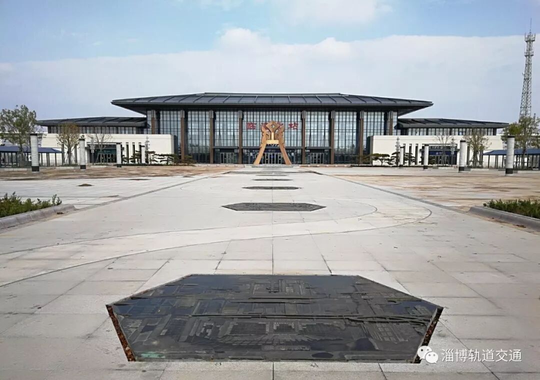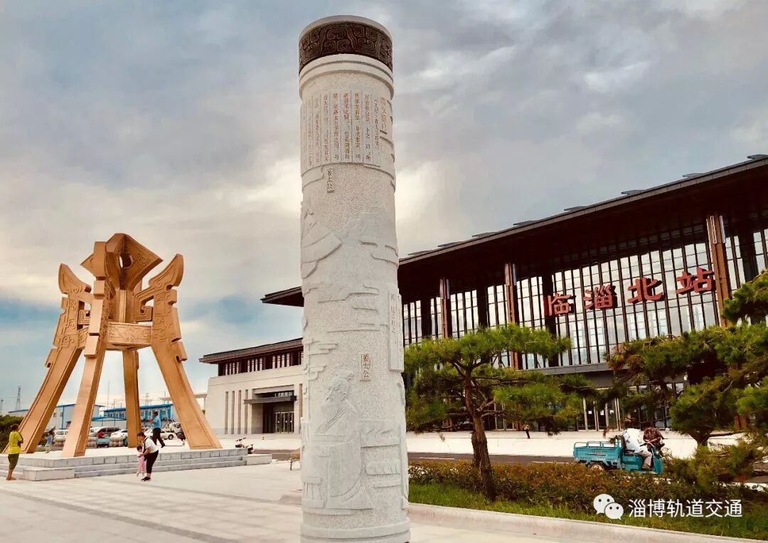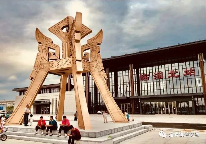 济青高铁临淄北站的站前广场,占地1万多平方米。东侧的小型汽车停车场拥有156个车位,西侧的大型汽车停车区也是未来的公交枢纽。广场中央的12根文化柱主要展示历史名人和文化遗产;最中央的大型铜雕,高9.5米,重30吨,命名为“天齐之门”。