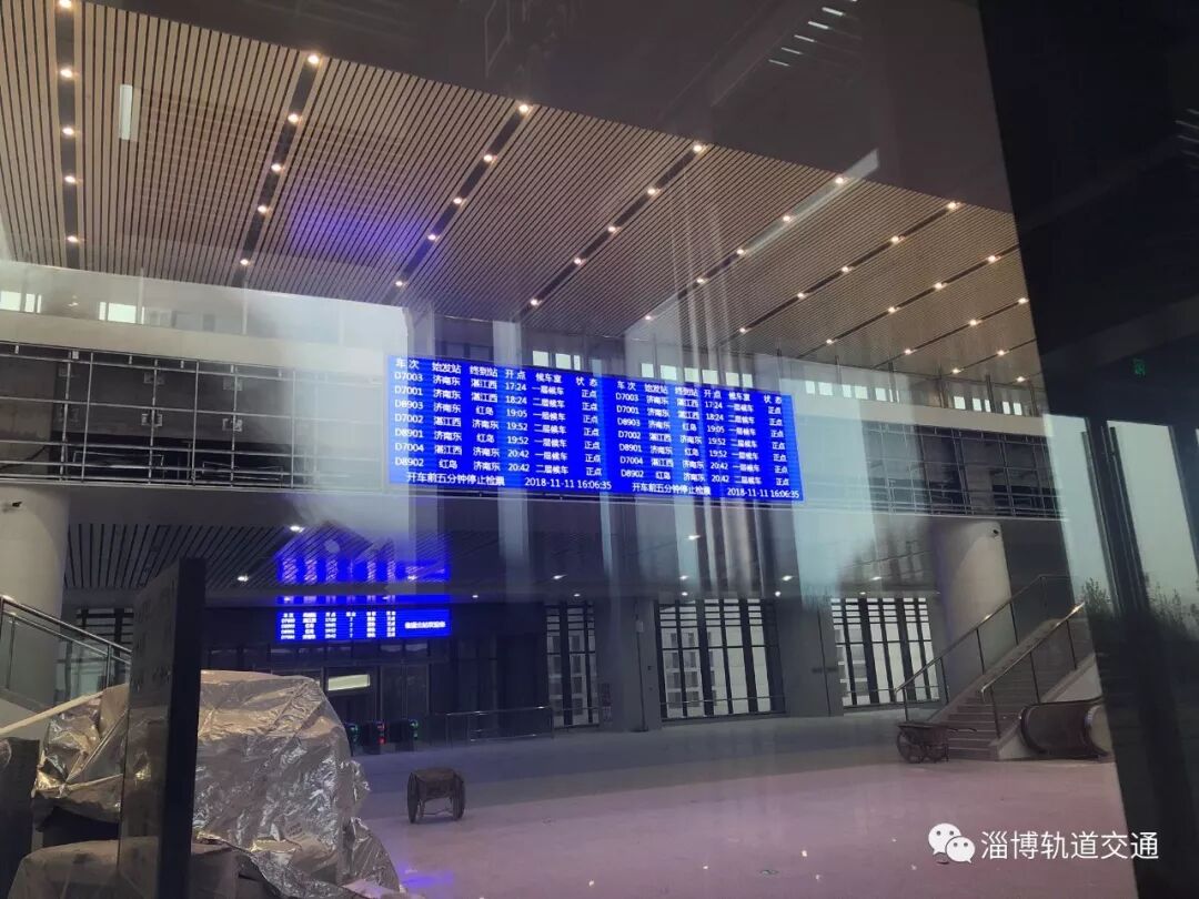 济青高铁临淄北站的候车大厅分为上下两层,下层通道穿越铁路进入北站台,上层通道则直通南站台,两条通道口都有自动检票机。站台上,包括电子屏、提示牌等便民设备也已完成安装,达到了使用条件。