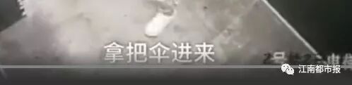 拿着雨伞在26楼电梯口