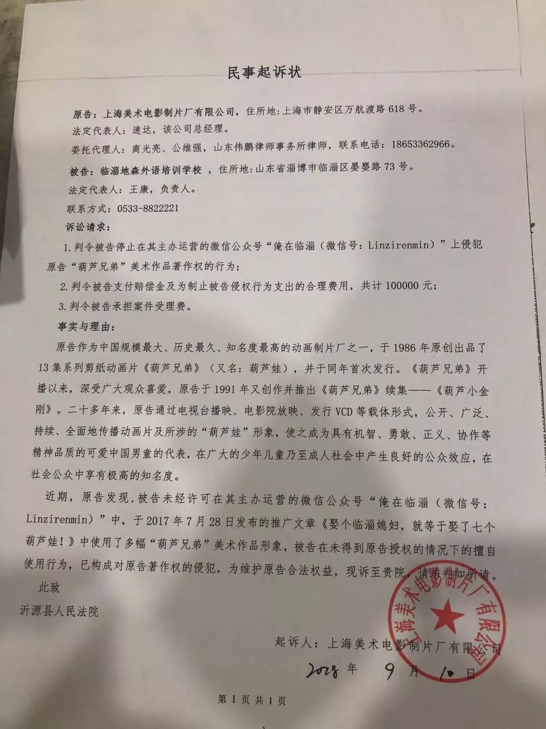 “葫芦娃”告了俺在临淄,临淄和张店的律师在沂源开庭!