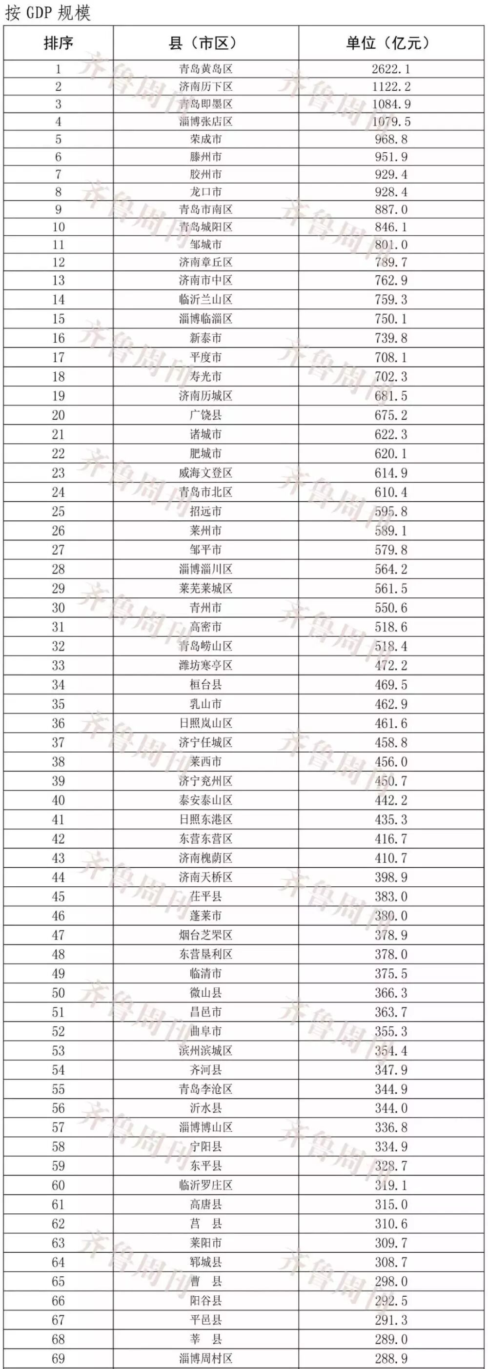 山东137个区县GDP大排名出炉,临淄排多少名?