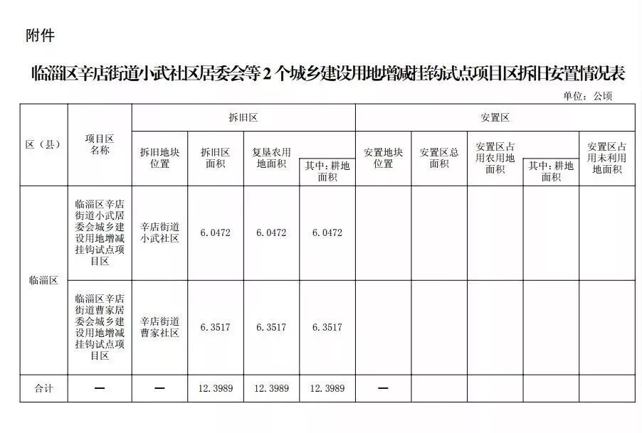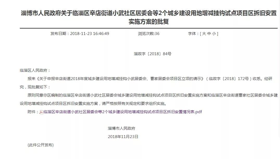 报来《关于申报辛店街道2018年度城乡建设用地增减挂钩小武居委会、曹家居委会项目区立项的请示》(临政字〔2018〕172号)收悉。经研究,现批复如下:原则同意你区编制的临淄区辛店街道小武社区居委会城乡建设用地增减挂钩试点项目区拆旧安置实施方案和临淄区辛店街道曹家社区居委会城乡建设用地增减挂钩试点项目区拆旧安置实施方案,请严格按照有关规定和要求组织实施。