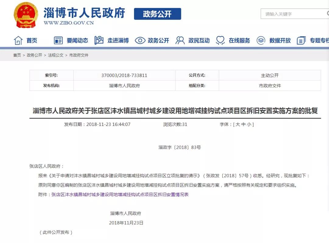 淄博市人民政府23日公开发布关于张店区沣水镇昌城村城乡建设用地增减挂钩试点项目区拆旧安置实施方案和临淄区辛店街道小武社区、曹家社区2个城乡建设用地增减挂钩试点项目区拆旧安置实施方案的批复。