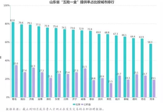 城市经济发展水平不一,“五险一金”提供率也是千差万别。以上是截止到今年10月底,山东省17市社保和公积金提供率占比排行。