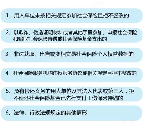 根据征求意见稿第5条规定,下面这6种情形拟列入社保“黑名单”: