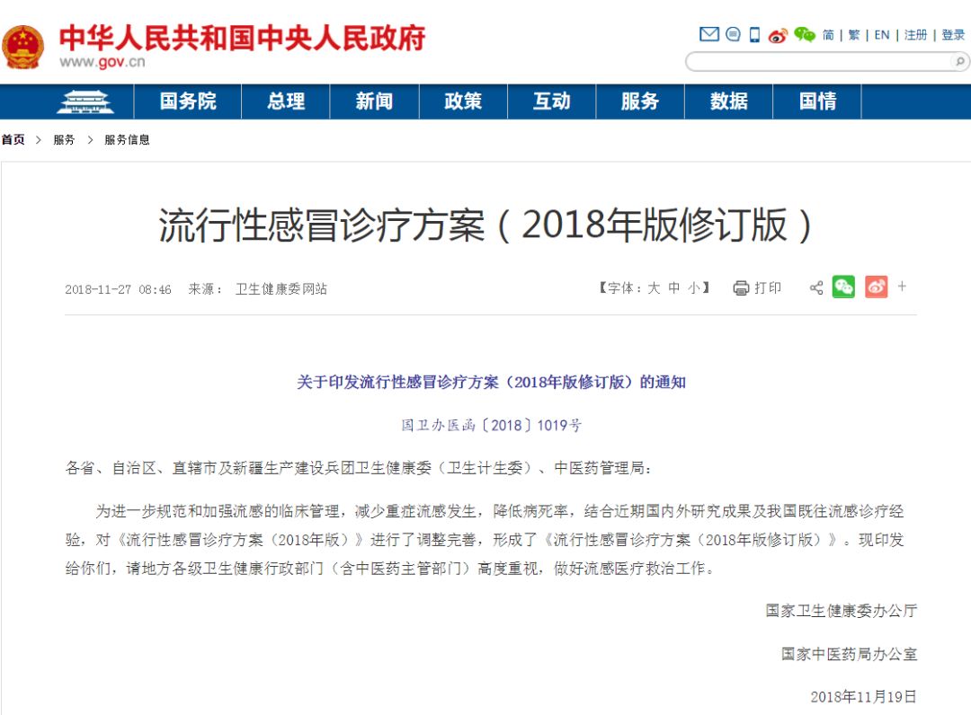 今天,在国家卫健委发布的《流行性感冒诊疗方案(2018版)》中,推荐了3个西药、13个中成药,并根据流感的轻、重症和恢复期点名推荐了5张中药治疗方。